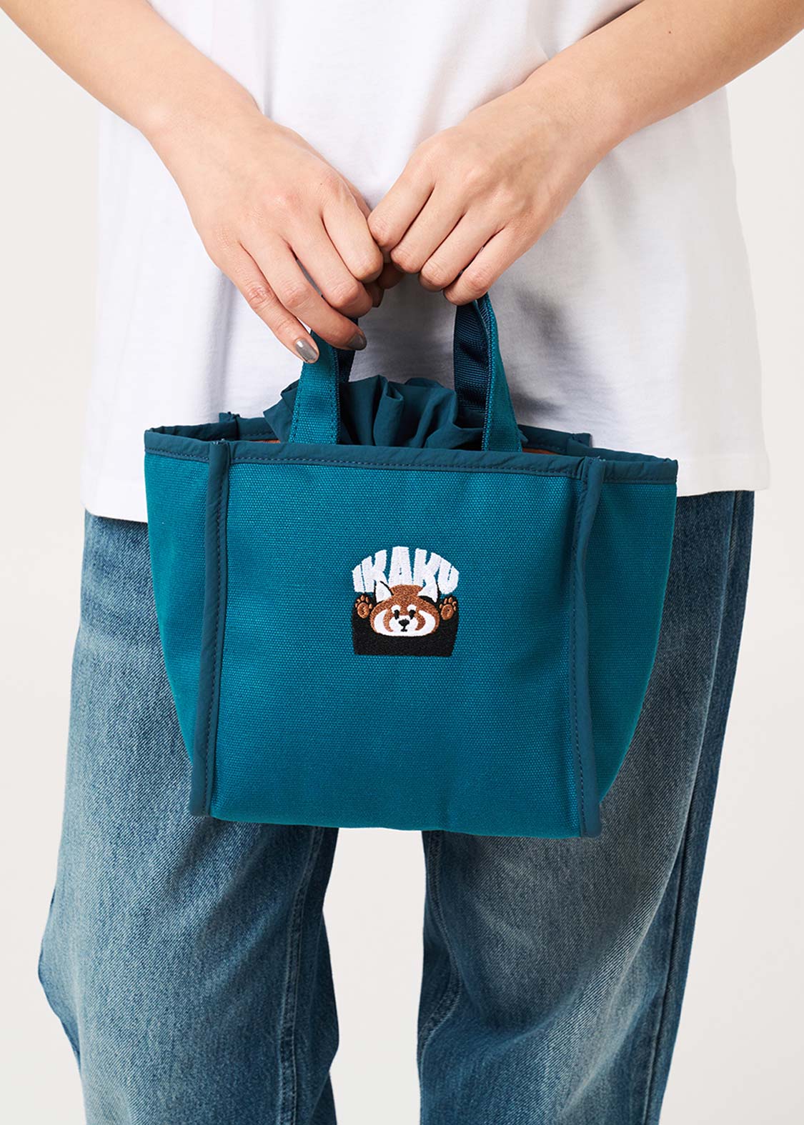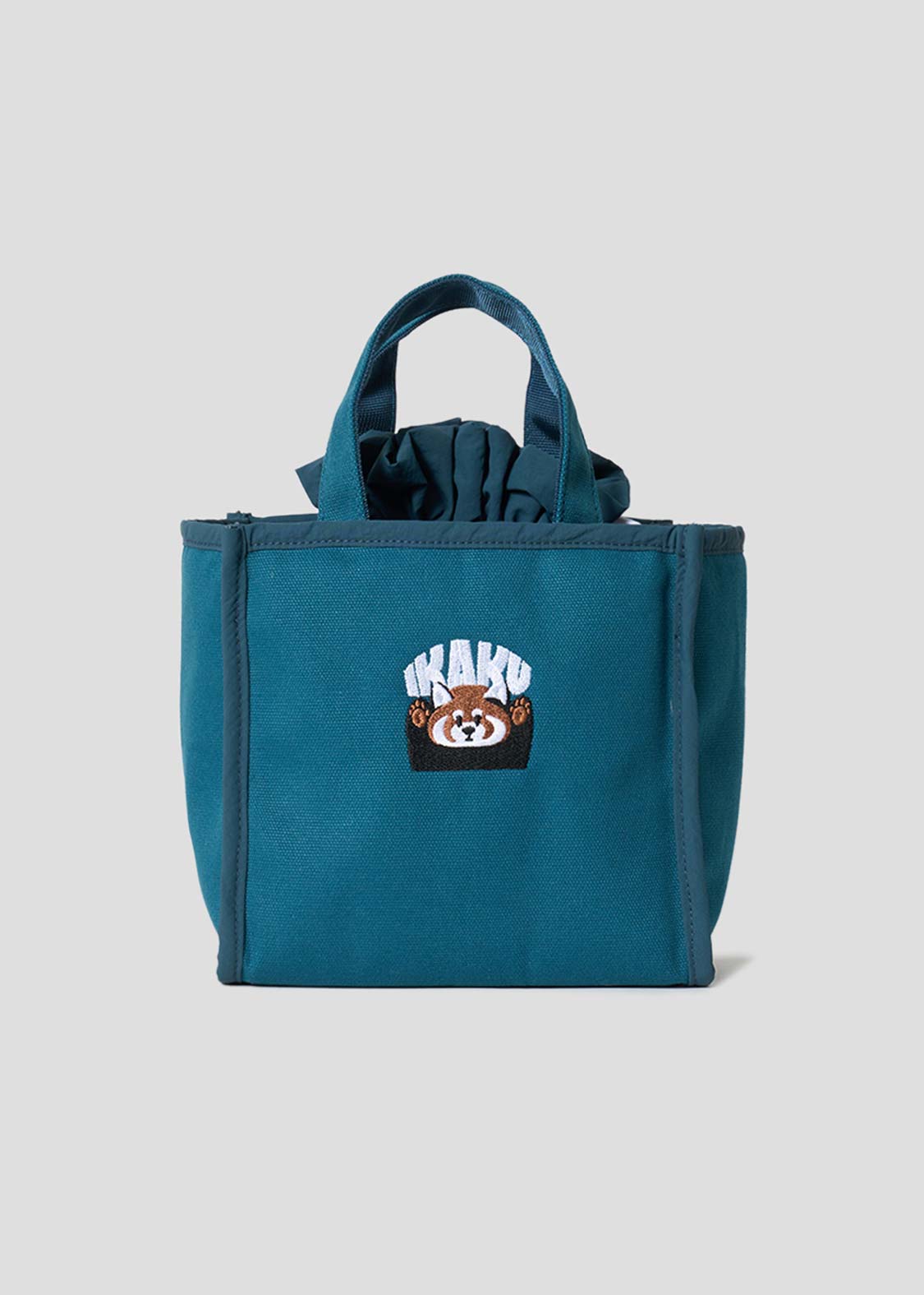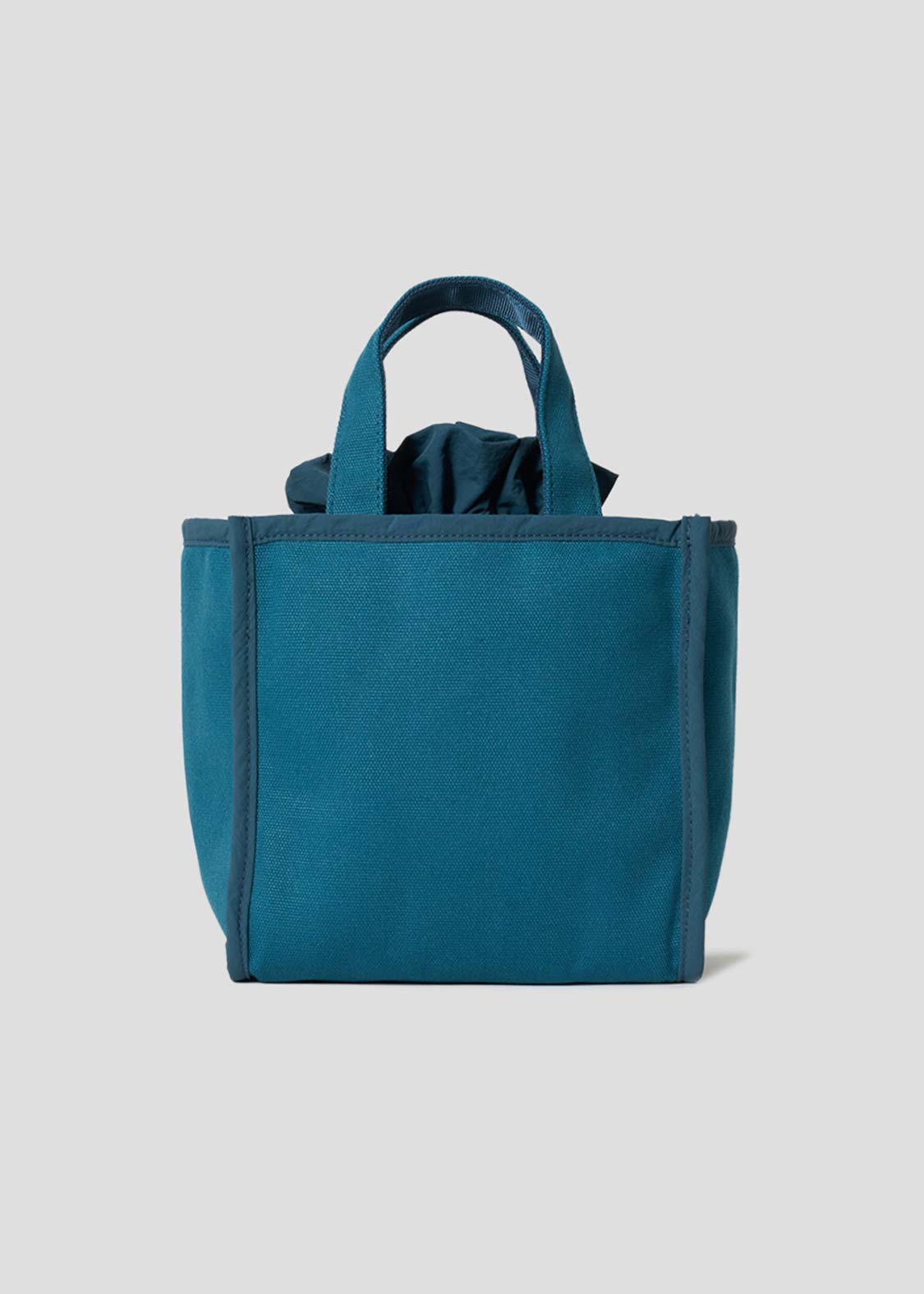 ・コットンキャンバス生地を使用したスクエアトートバッグと、表生地にポリエステル生地、内側生地に保冷生地を使用した巾着バッグがセットになった2wayランチバッグです。