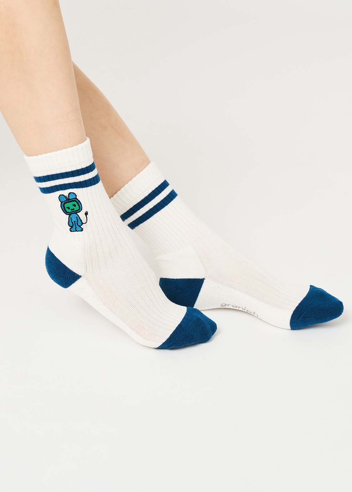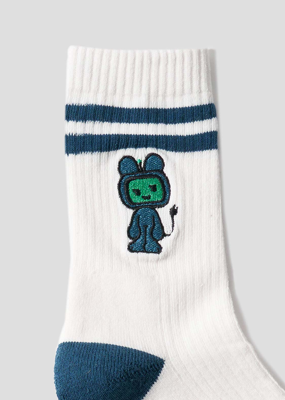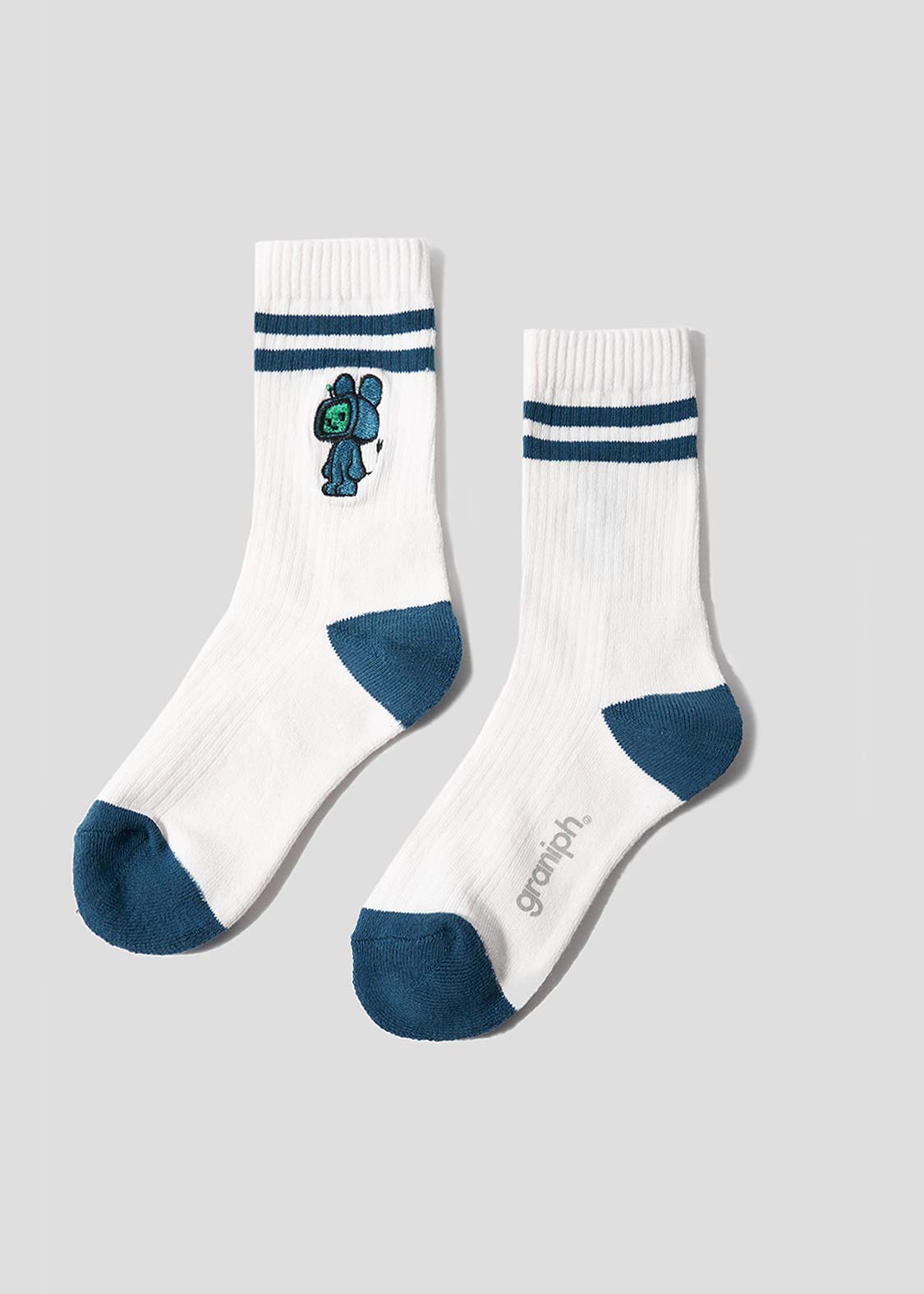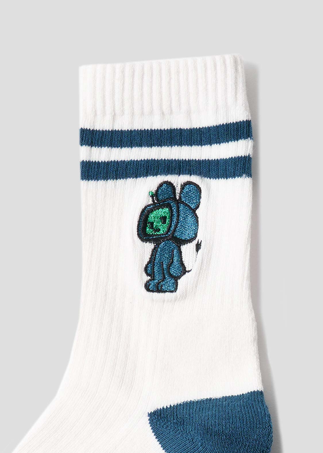・グラフィックを刺繍で表現した、ミドル丈のリブソックス。
