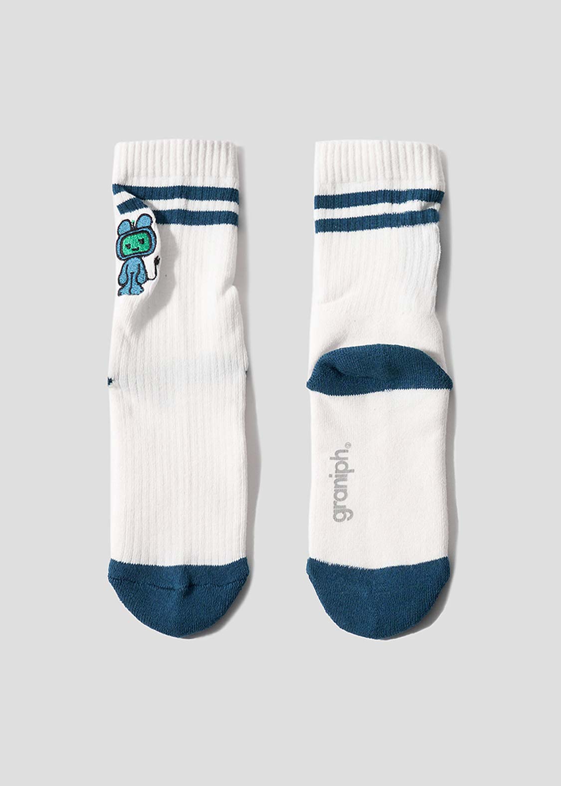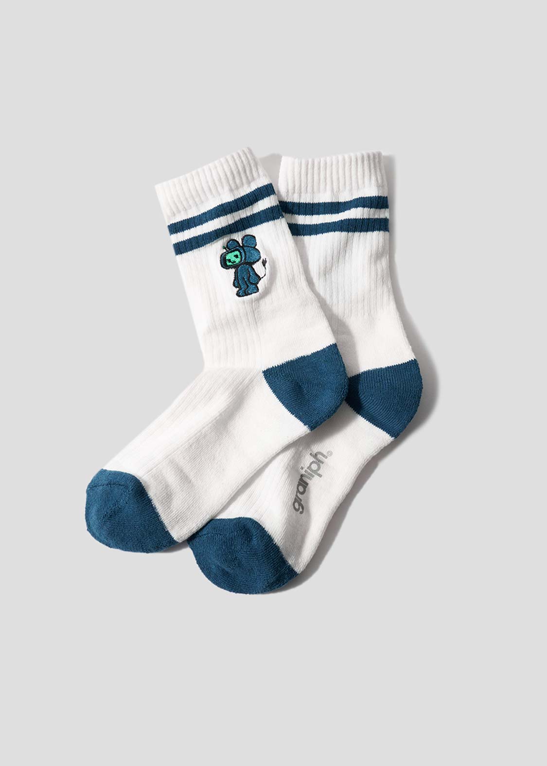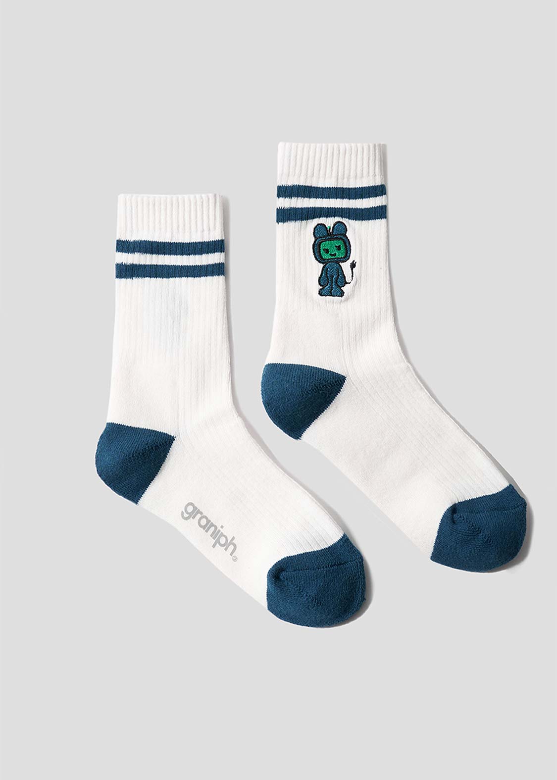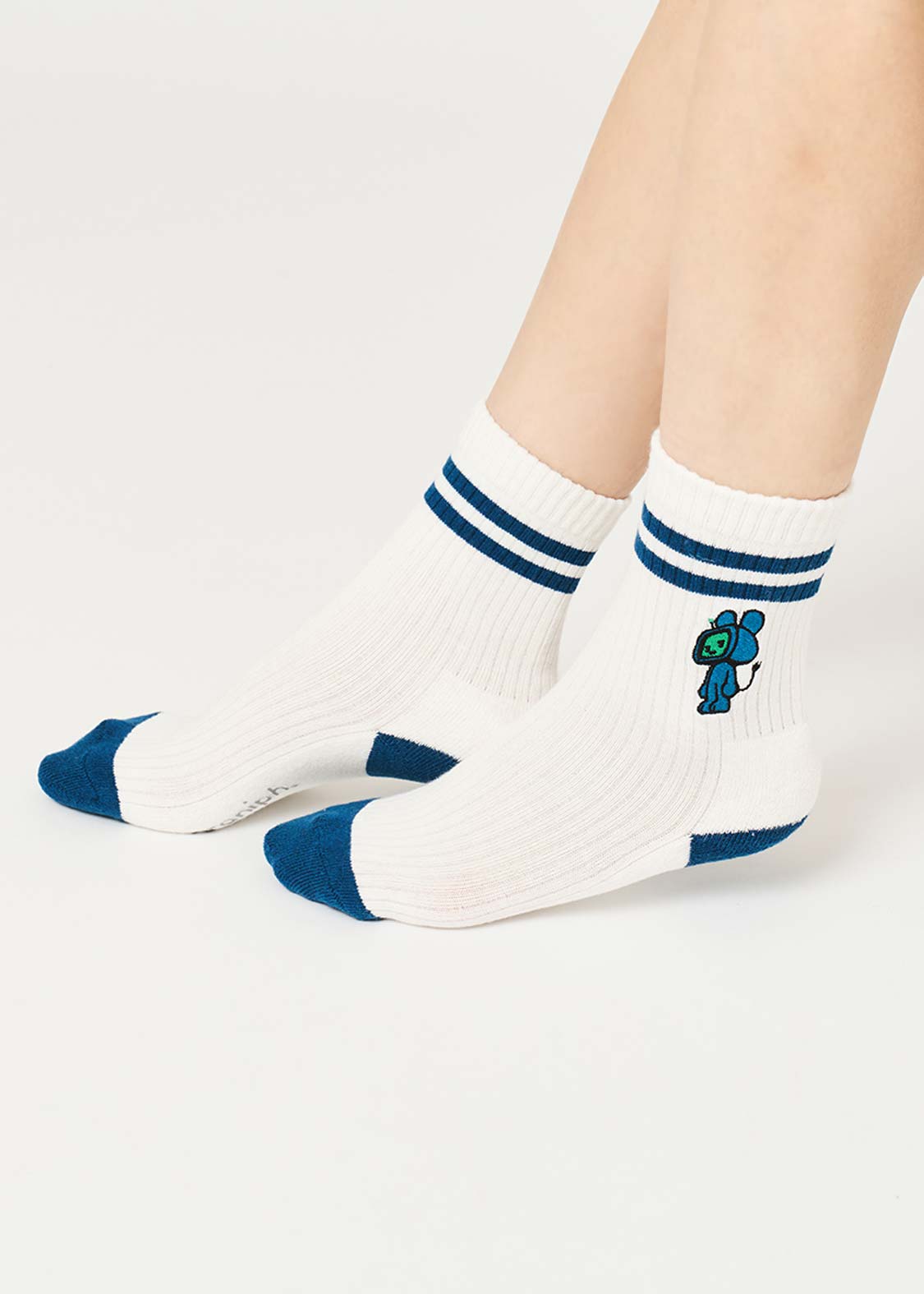 ・グラフィックを刺繍で表現した、ミドル丈のリブソックス。