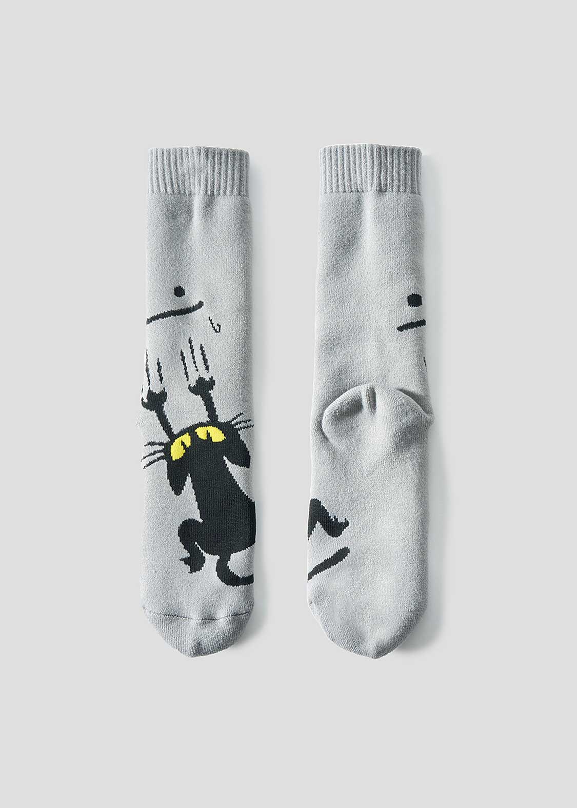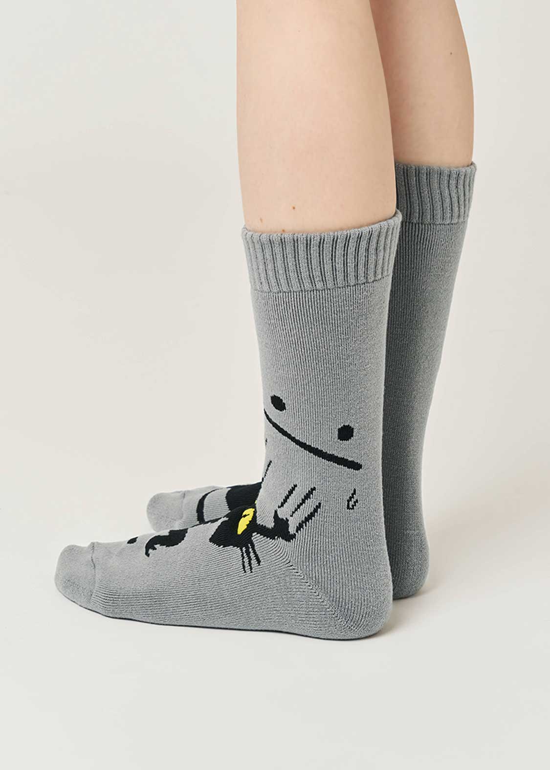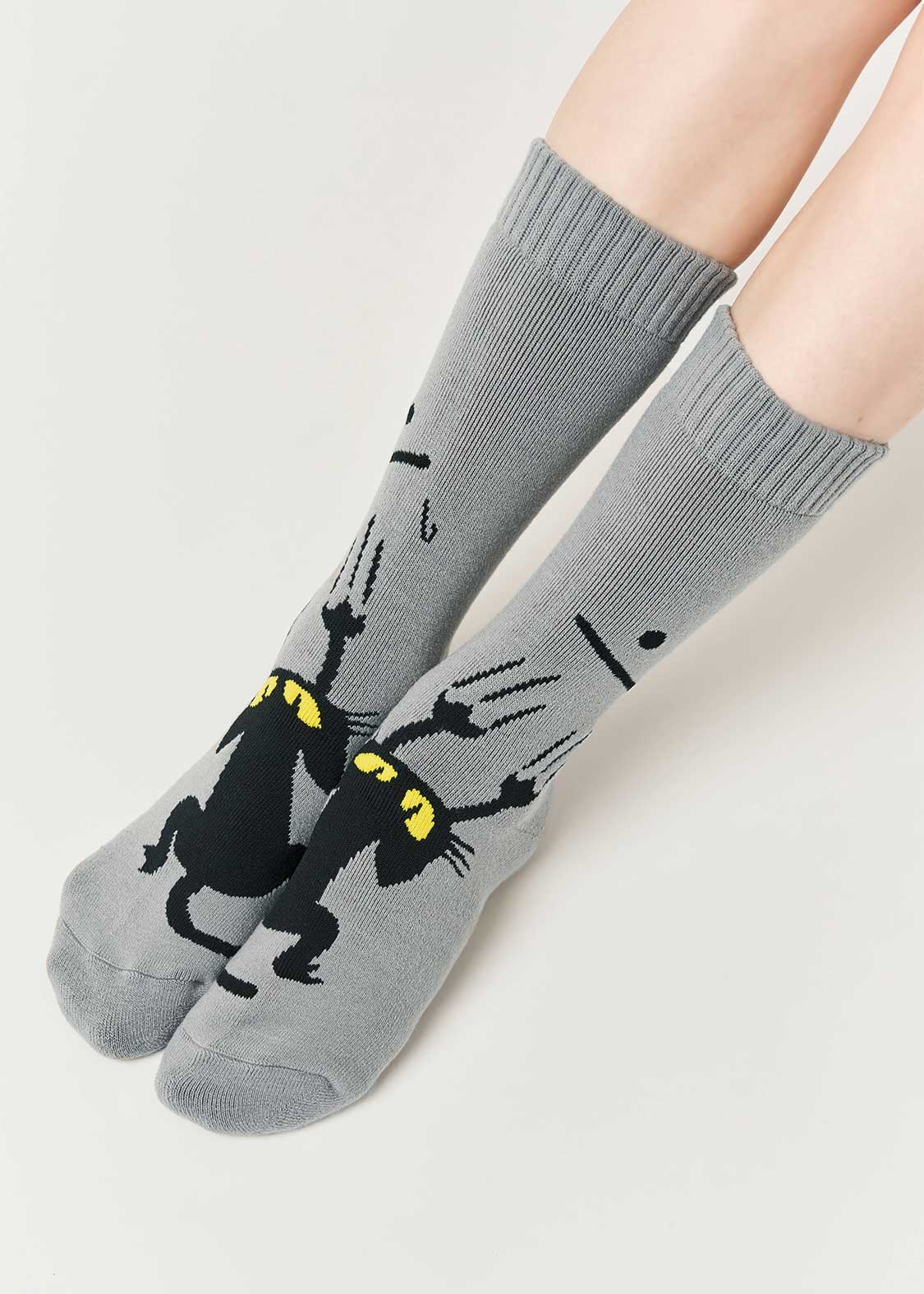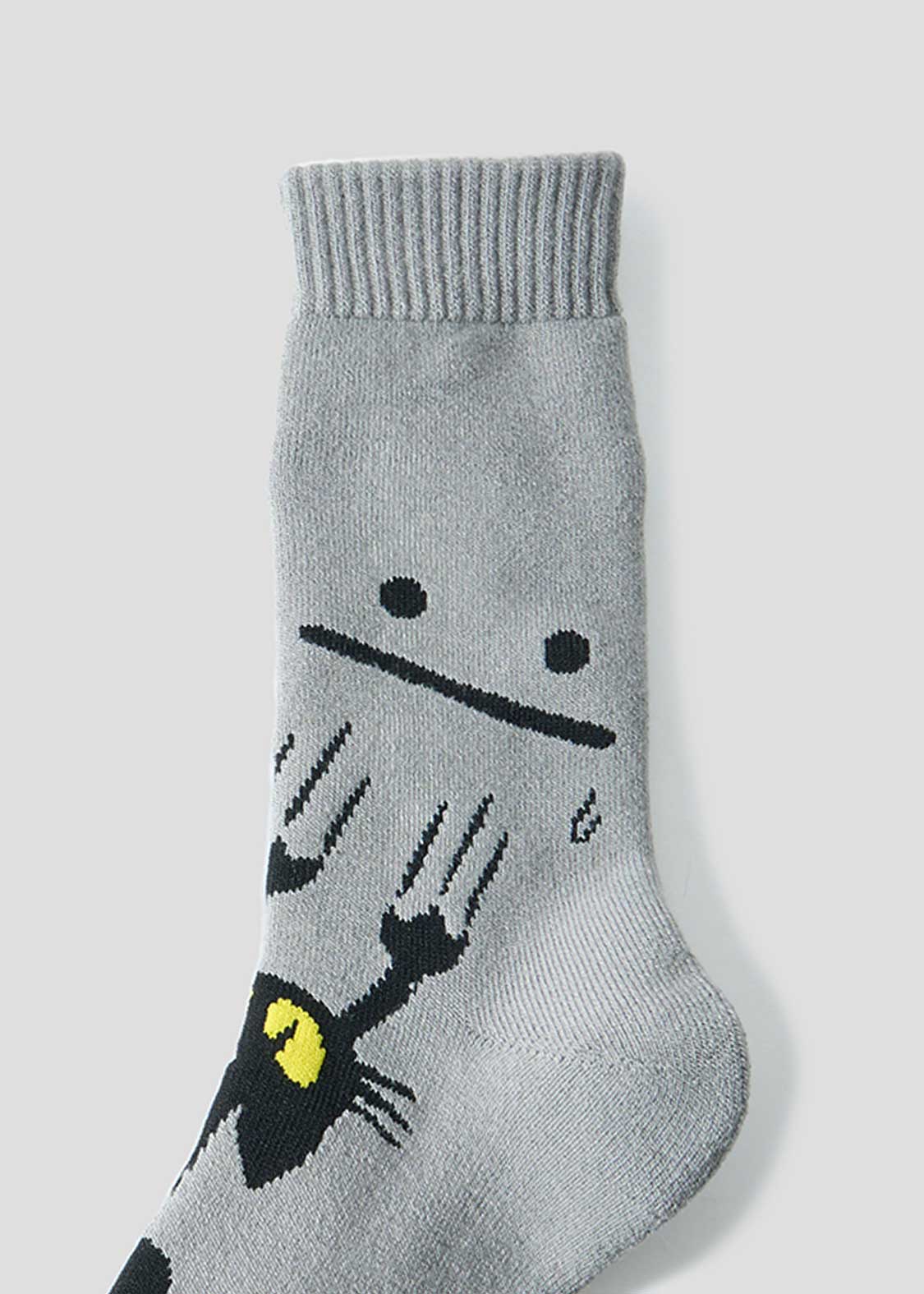 ・細かなグラフィックをジャカードで表現した、ロング丈のルームソックス。
