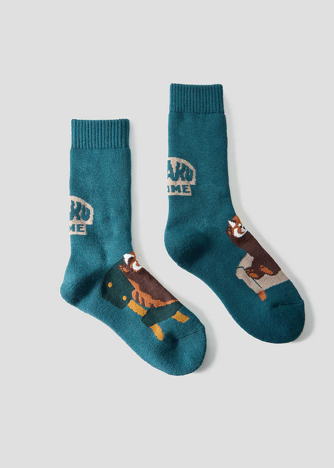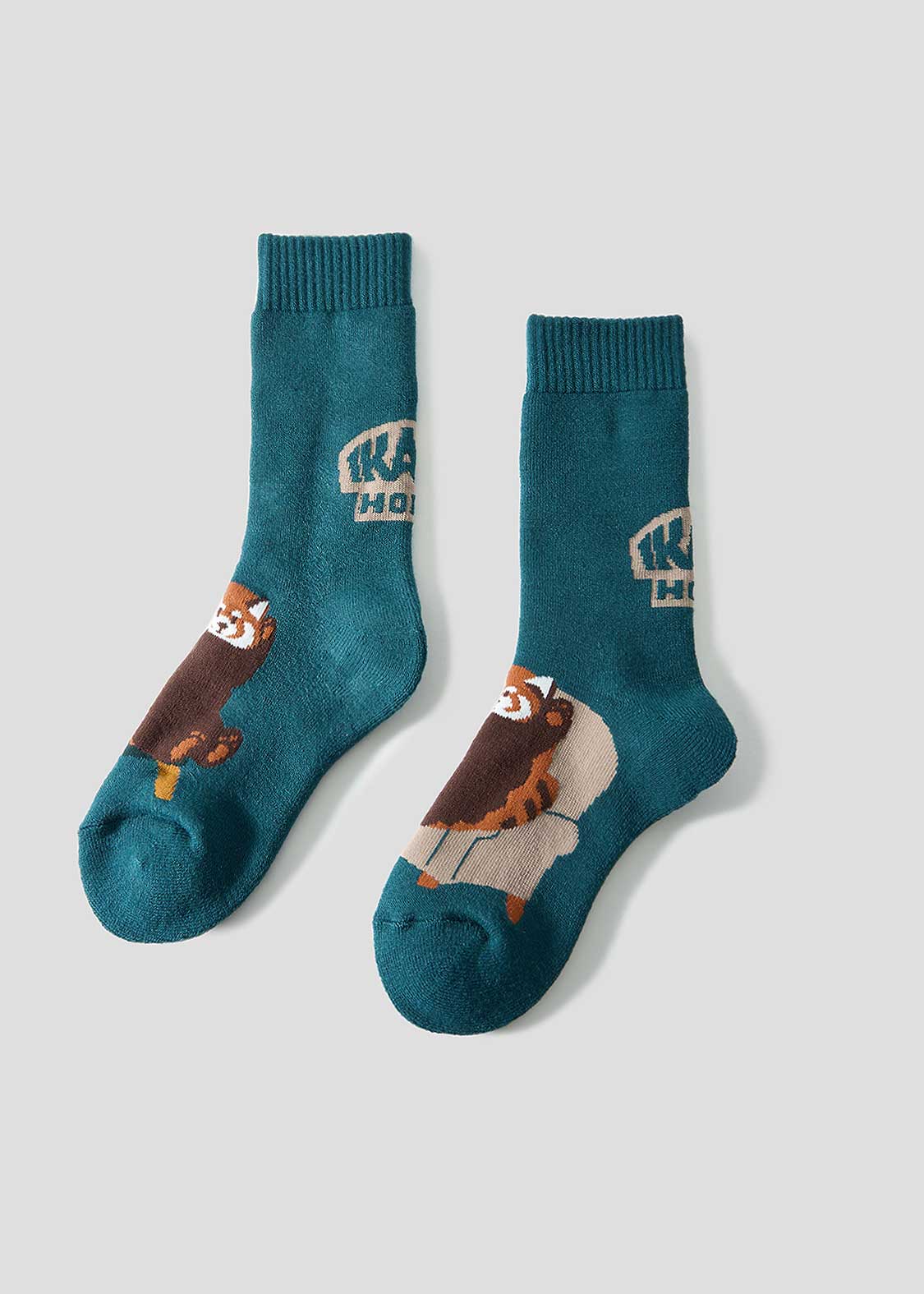 イカクのイラストが甲の部分にあり、靴下を履いていても自分でも見えるのが気に入りました。厚手で冬にぴったりです♪