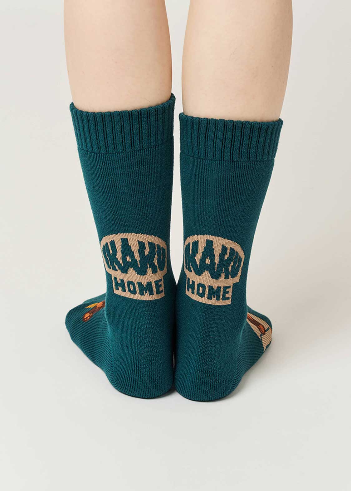 ・細かなグラフィックをジャカードで表現した、ロング丈のルームソックス。