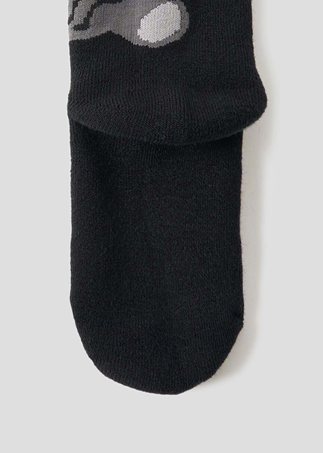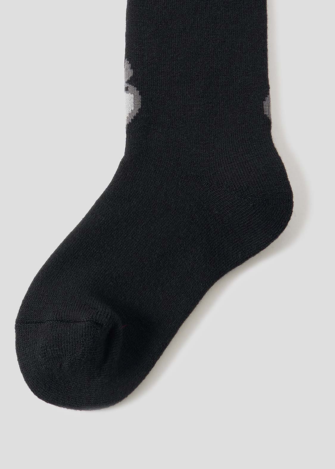 ・細かなグラフィックをジャカードで表現した、ロング丈のルームソックス。