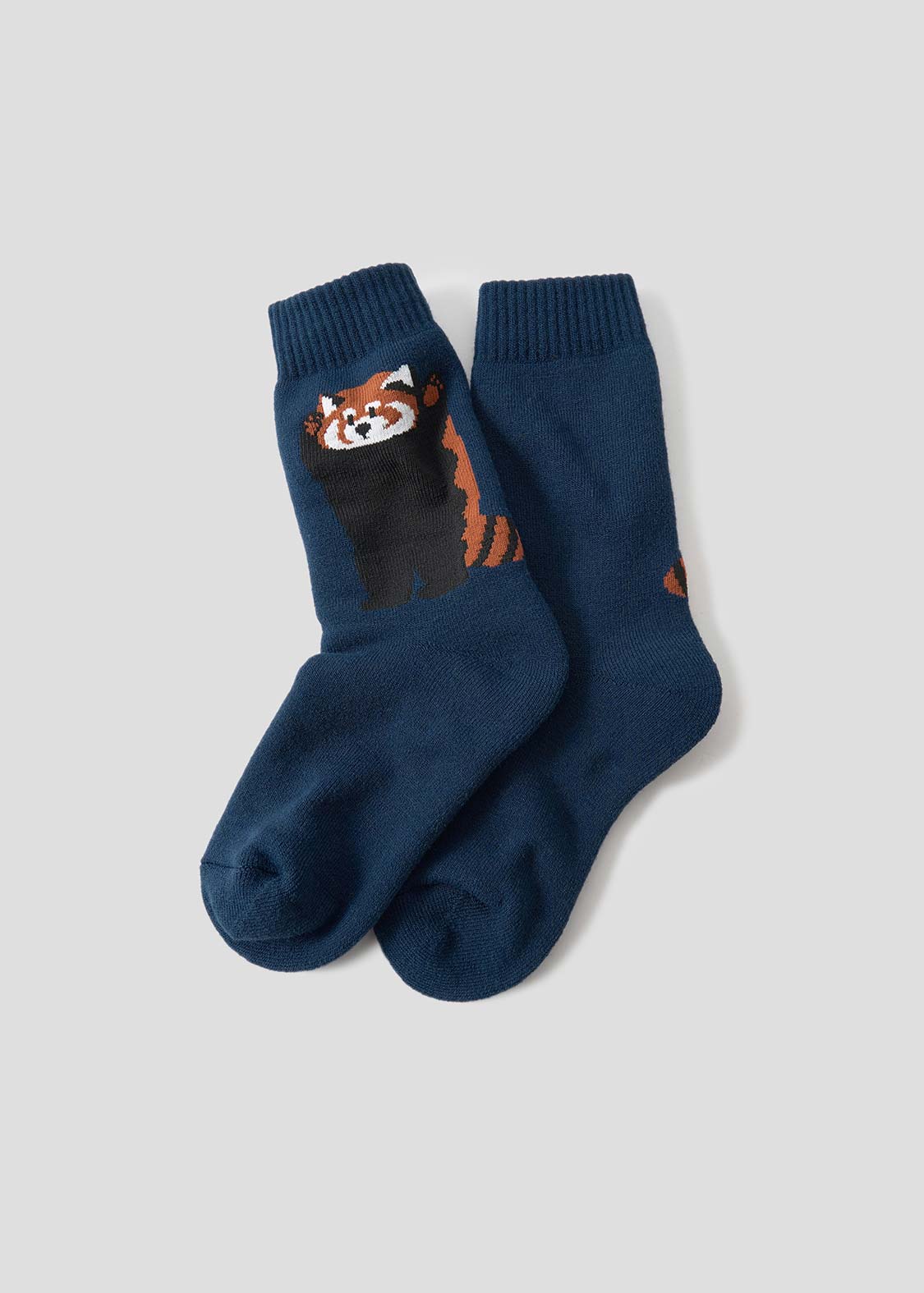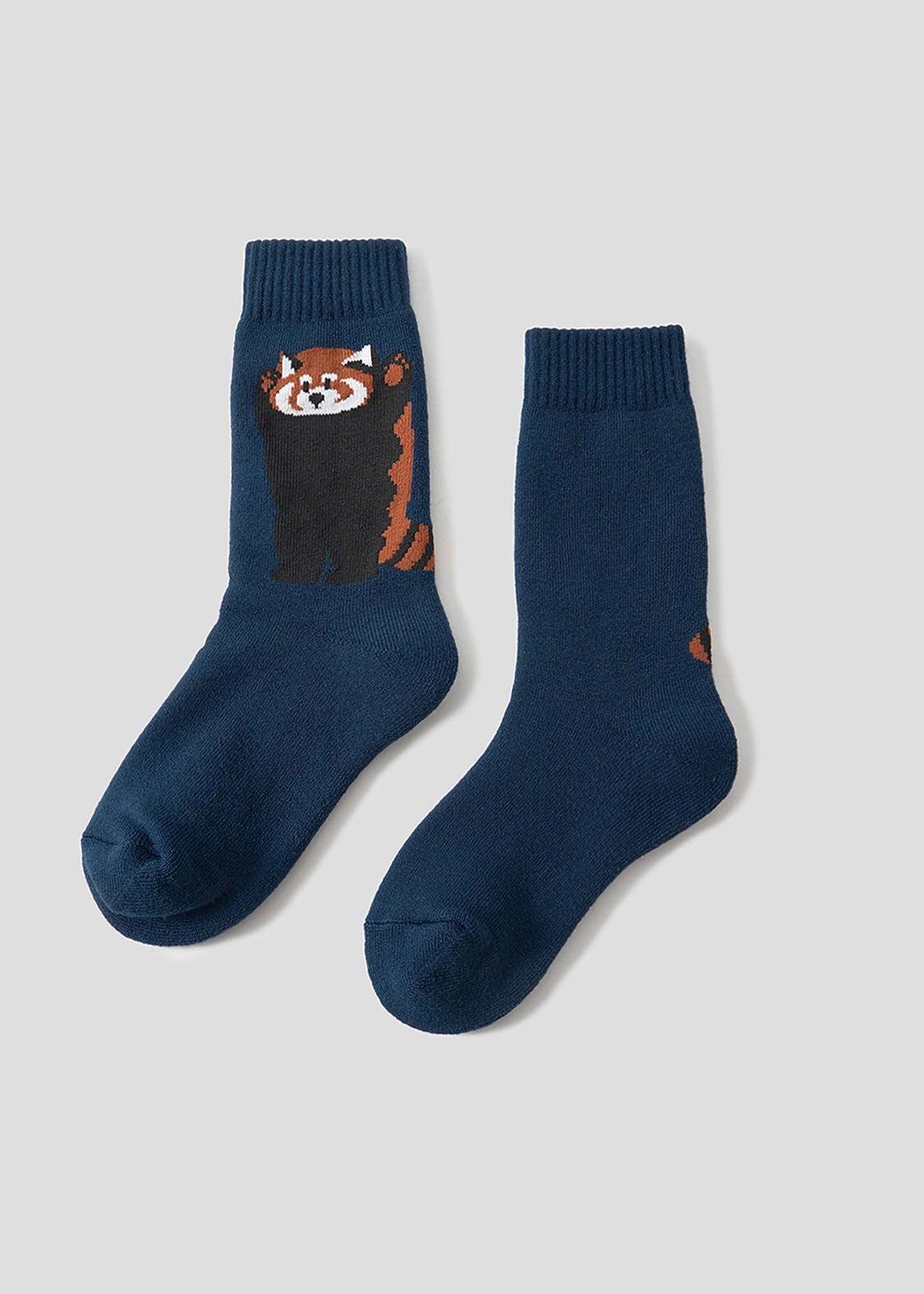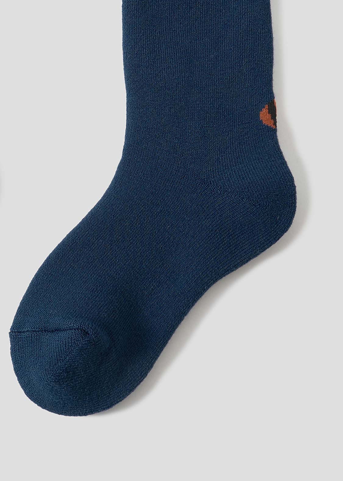 ・細かなグラフィックをジャカードで表現した、ロング丈のルームソックス。