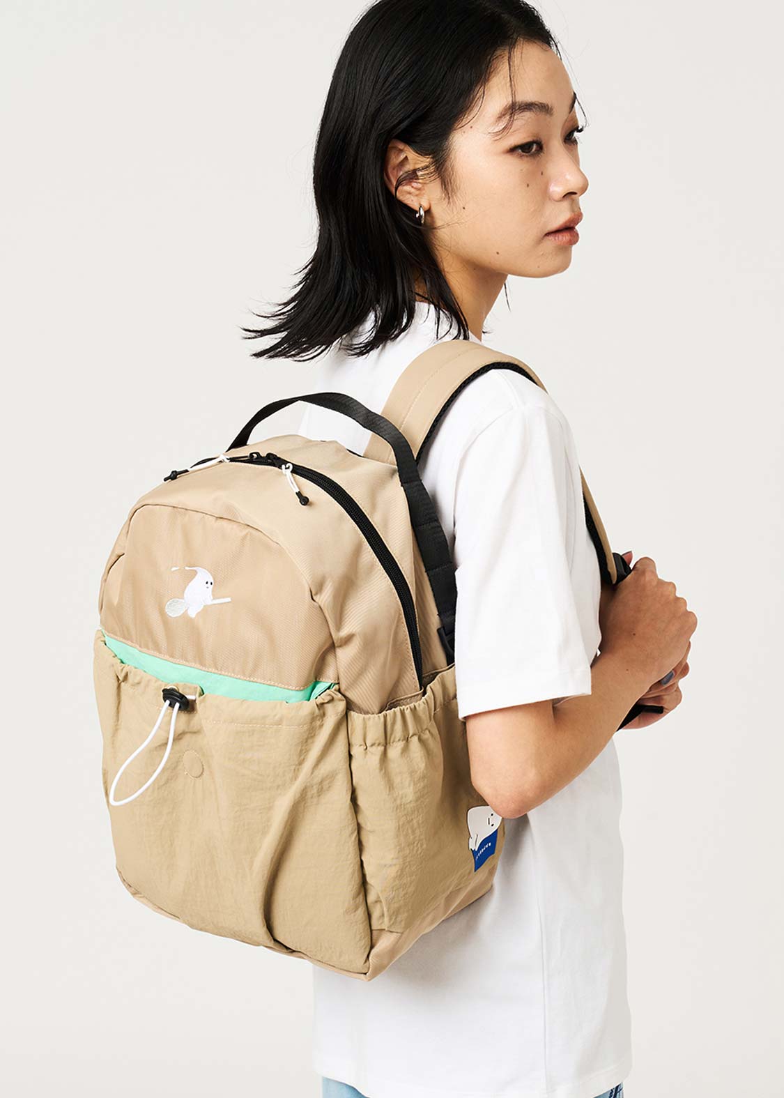 ・両サイドのDカンには別売りのぬいぐるみチャームやミニポーチ等を取り付けられます。