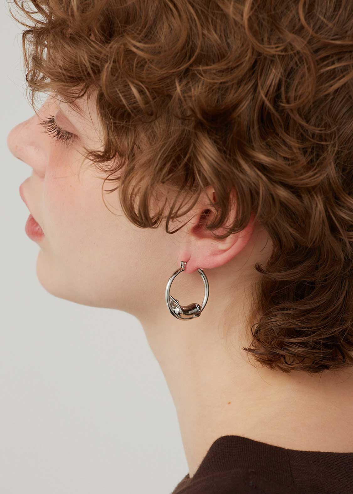 ・やや大きめフープの中には、のんびりとくつろぐシャドーがいる可愛いピアスです。