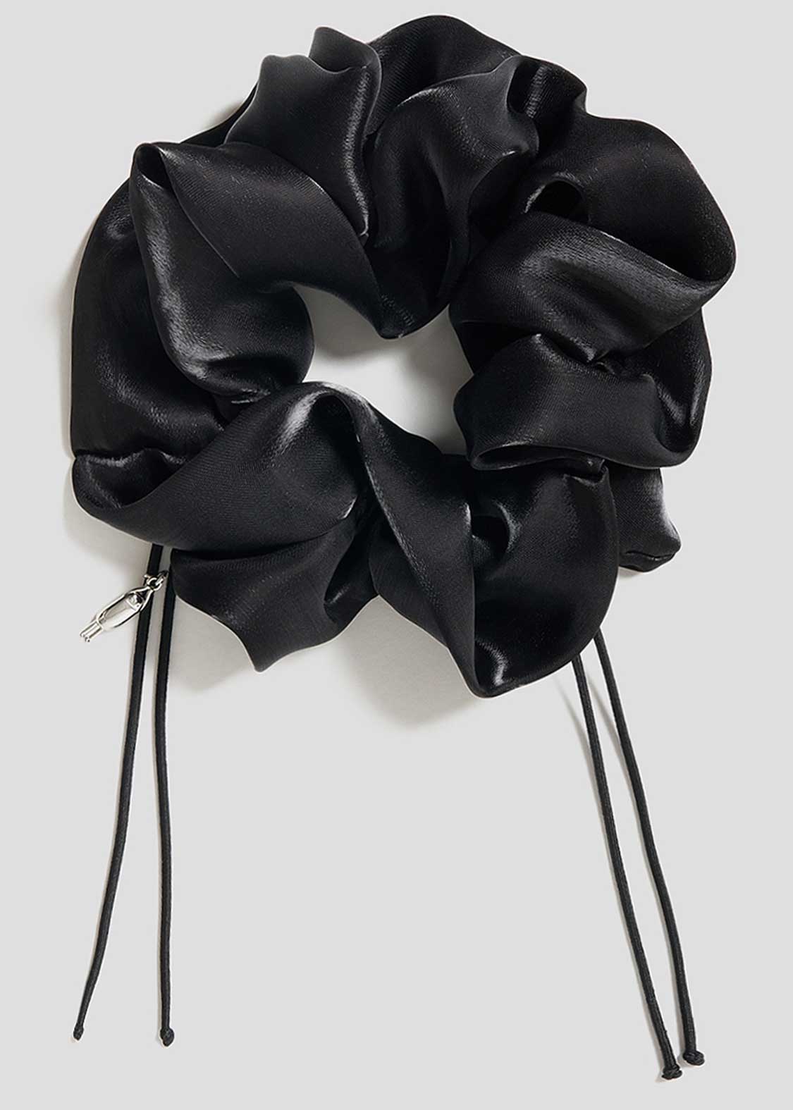 これ,とってもかわいいです!職場の同僚にも好評でした^^ ドローコードがよい感じでアクセントになり,シャドーのチャームもいいアクセントになってます。通常のシュシュはつける時に最低でも2回程度シュシュをまく感じにしなければならず,その過程でシュシュのくしゅくしゅ感が失われますが,このシュシュはいわゆる型崩れなく綺麗にシュシュ感が保ててとてもかわいいです!年齢関係なく使用できると思います。