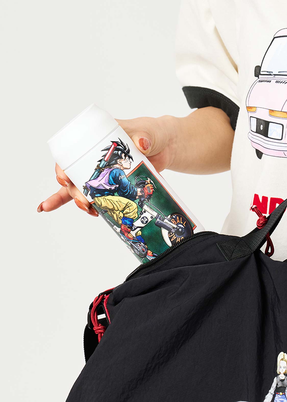 自転車に乗って風を切る悟空の印象的なイラストと、作品タイトルをプリントしました。