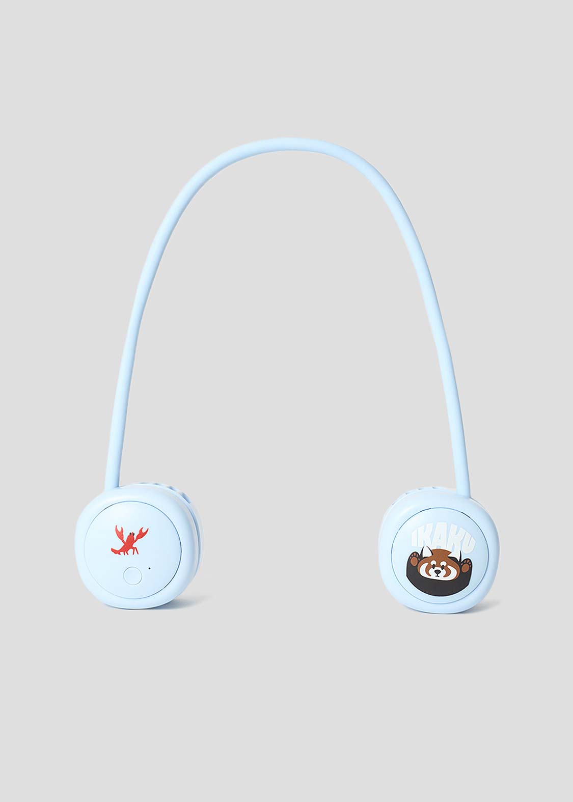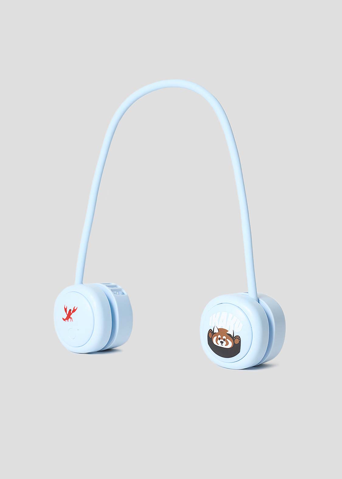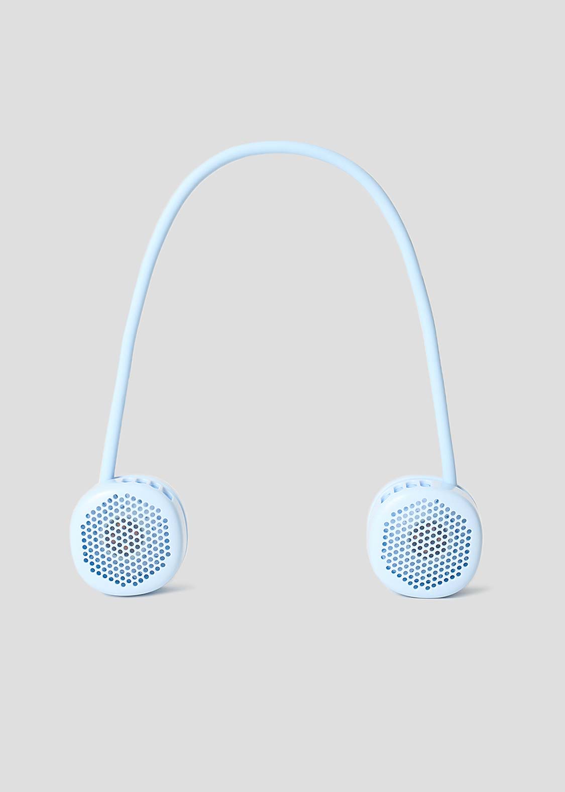 ・首にかけて使用できるUSB充電式ポータブル扇風機。