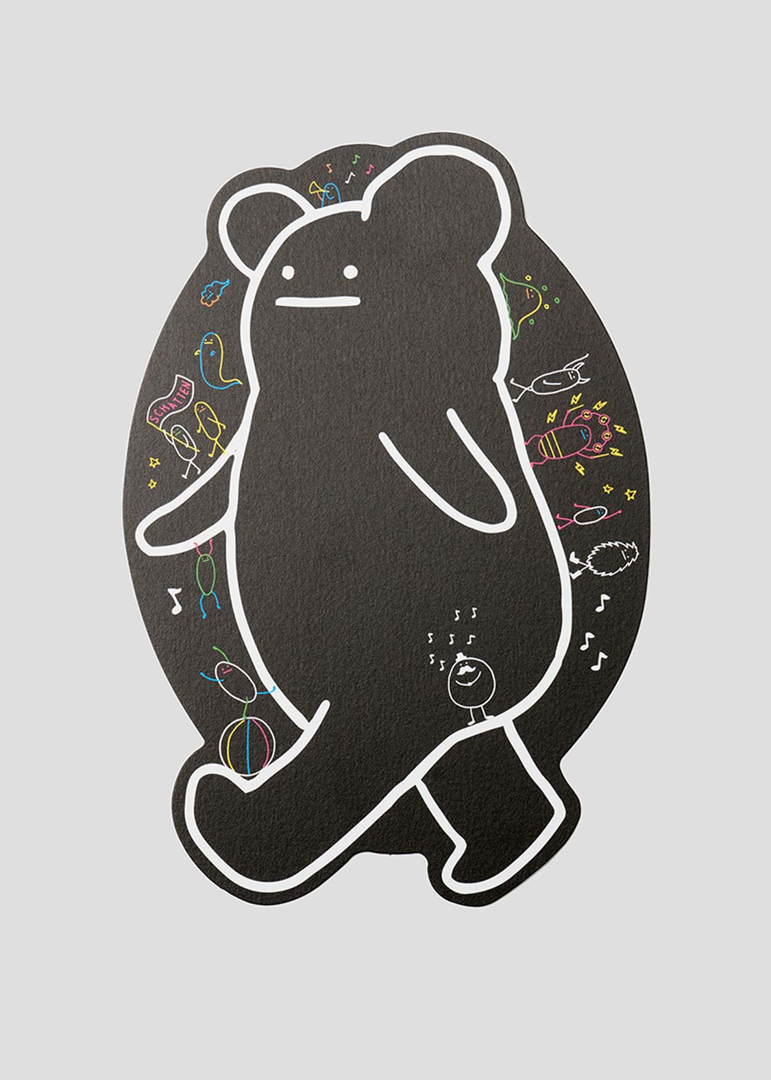 旗を振り歓声をあげて行進するビューティフルシャドーたち。ひょうひょうとした愛らしいキャラクターで人気の『ビューティフルシャドー』シリーズ。