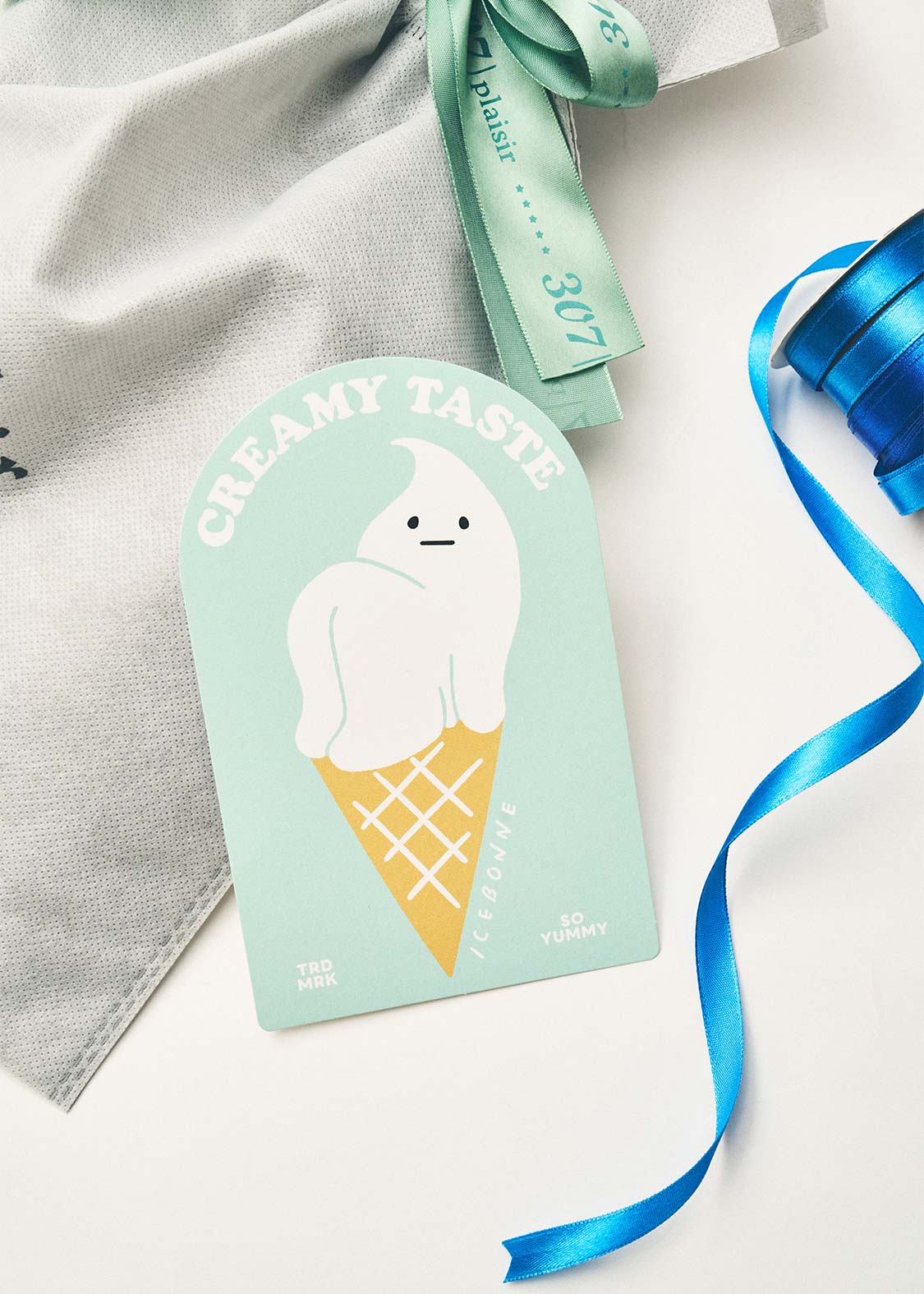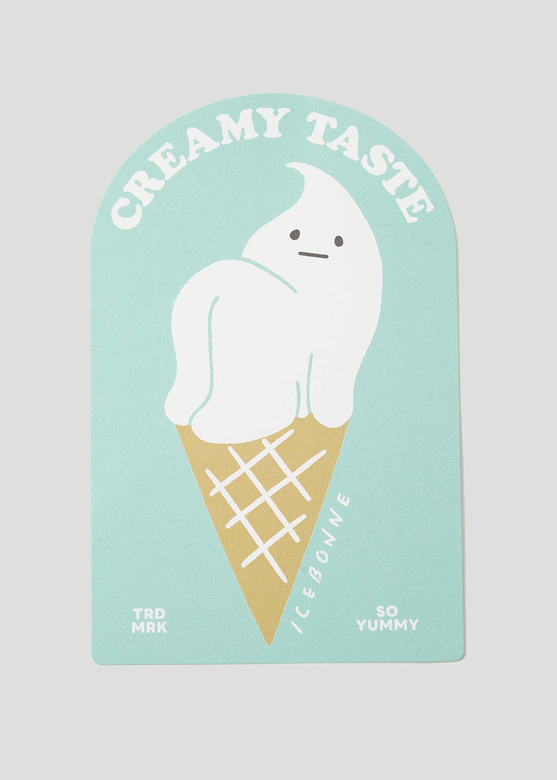アイスクリームワールド「YUM YUM CREAMERY / ヤムヤムクリーマリー」で生まれたアイスボン。見た目通りののんびり屋さんで、ダラダラとマイペースに生きることが信条。大好きなコーンやカップの上で、他のフレーバー仲間たちと日々楽しく暮らしていますが、夏は少し苦手です。
