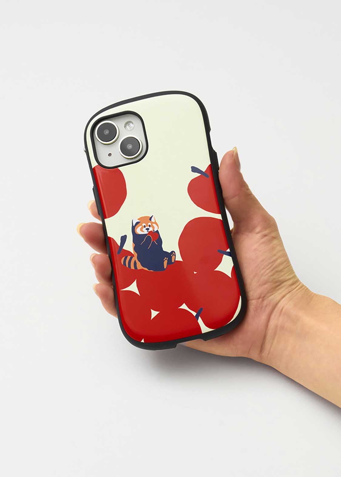 レッサーパンダの大好物、りんごをフィーチュア。赤いりんごがアクセントになる、遊び心のあるグラフィックです。