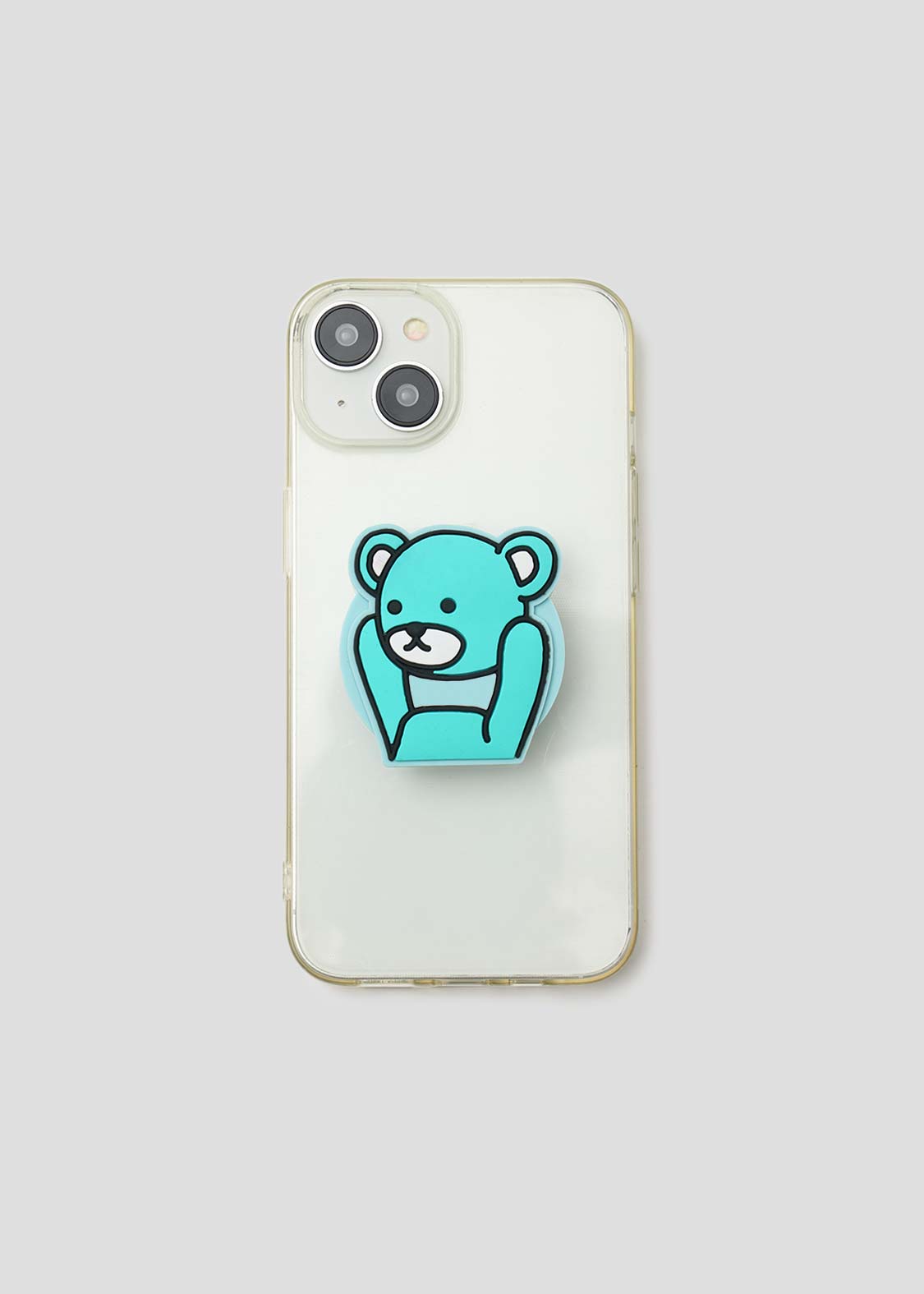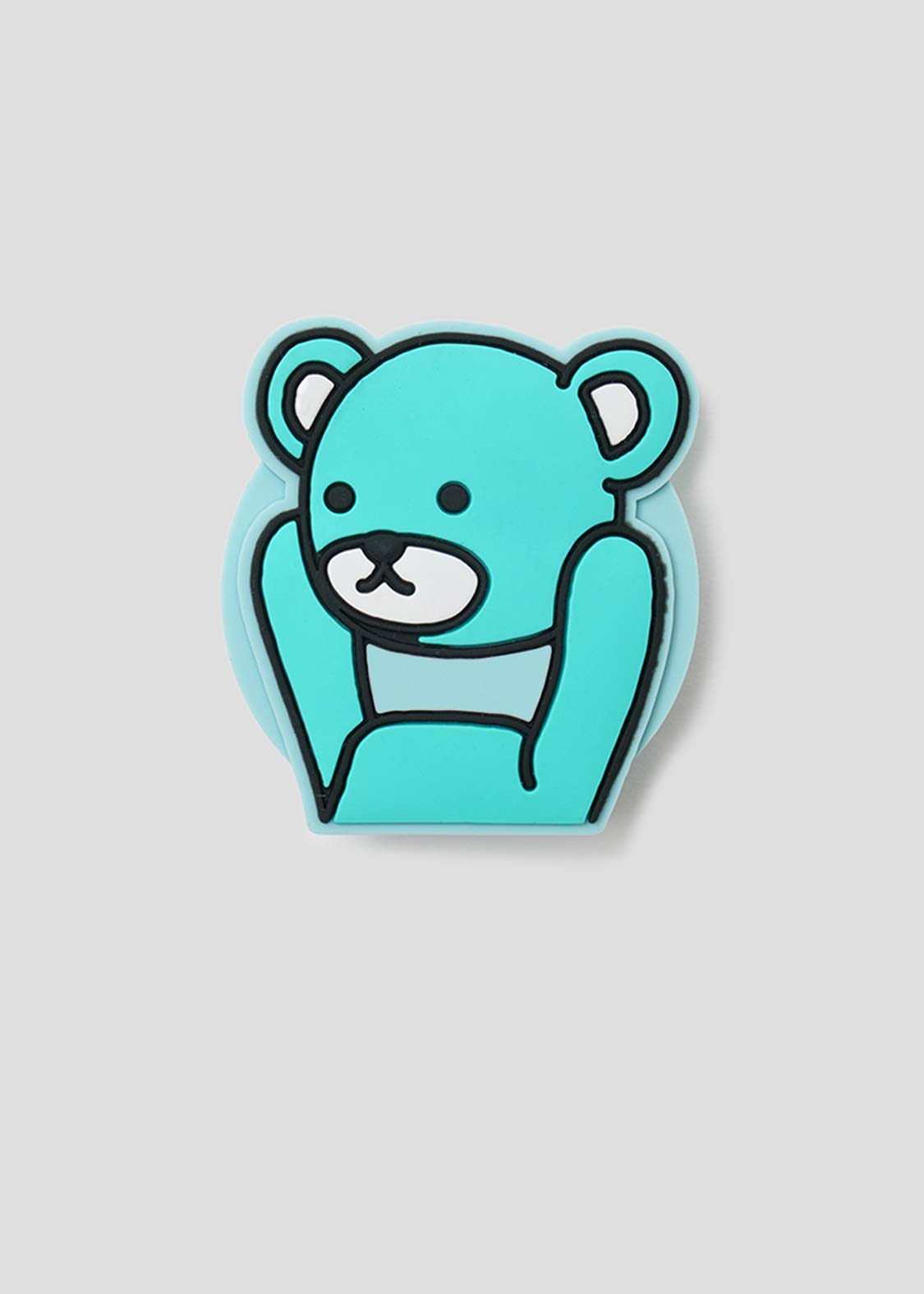 ポン!とばかりに頭をとるファニーなクマくん。ブラックなユーモアとキュートさが混じりあったインパクトのあるキャラクターです。