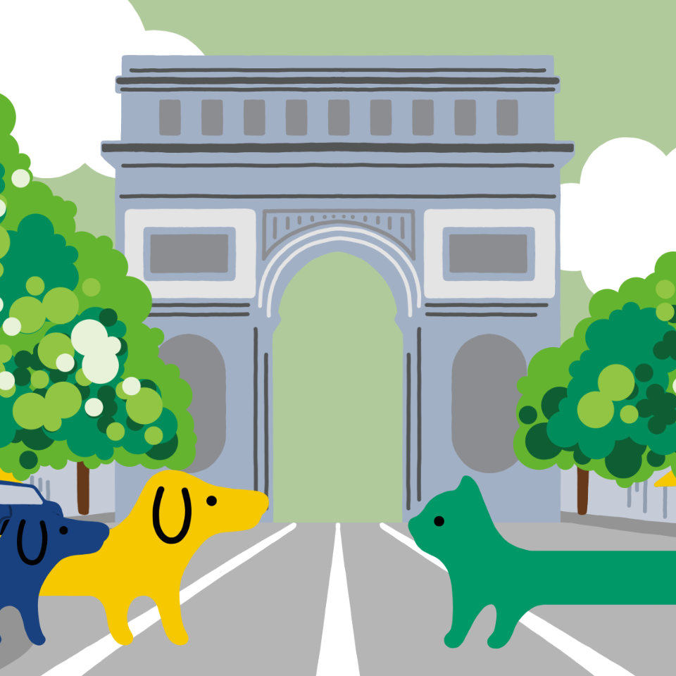 イヌたちは、しっぽを探してさまざまな国を訪れます。中国ではパンダ、エジプトではスフィンクス、パリではナガスギルネコなど、さまざまな生き物(?)たちも登場! 風景の中には、万里の長城や凱旋門など、各国を象徴する建物が描かれていて、絵本を通して、まるで世界旅行をしているような気分を味わうことができます。また、日本とは違った文化をもつ国々があることを感じることができます。