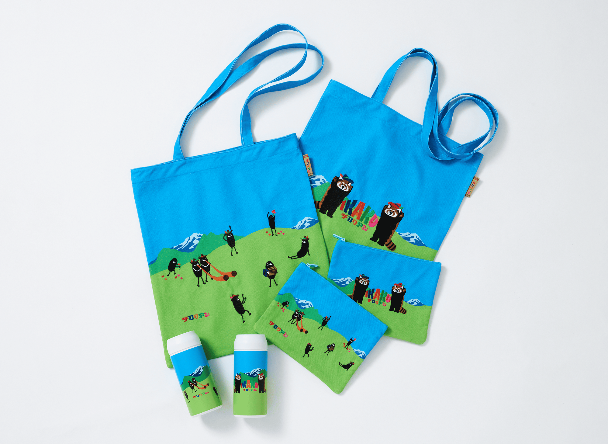 千鳥饅頭総本舗「チロリアン」&東雲堂「にわかせんぺい」×グラニフオリジナルキャラクターのユニークな世界観が広がる限定アイテムを、Tシャツのほか、ポーチ・ステーショナリー・キーホルダーなどさまざまな雑貨で展開。「チロリアン」限定アイテムとしてグラニフ限定パッケージのチロリアン、「にわかせんぺい」限定アイテムとしてお面をつけたぬいぐるみチャームとマグカップが登場!