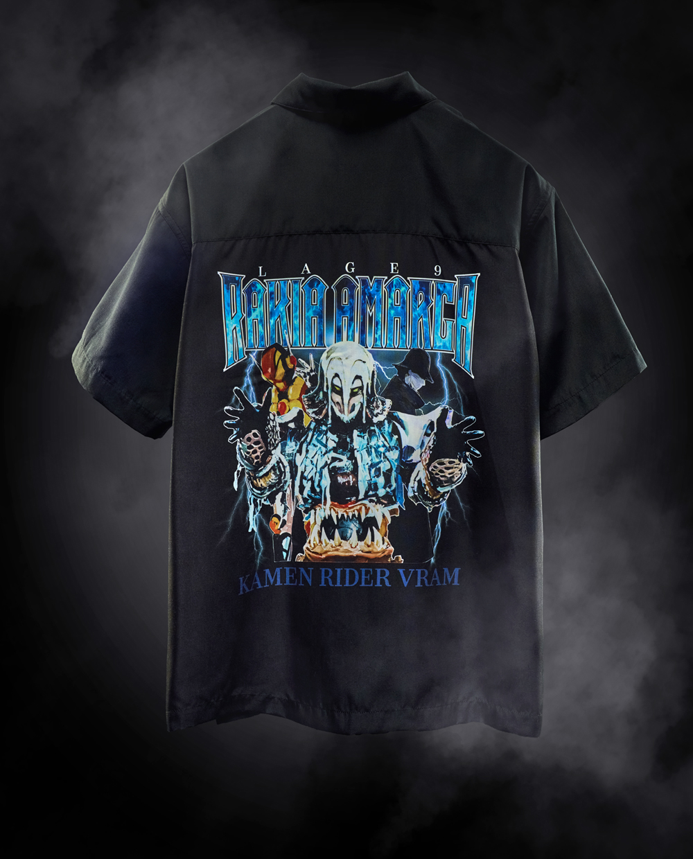 石川次は2024年放送『仮面ライダーガヴ』より、ラキア・アマルガをフィーチャーした半袖シャツです。背面のプリントはグラニュート態のラーゲ9の姿をメインに、人間態と「仮面ライダーヴラム」の姿をかっこいいデザインに仕上げました。フロントのポケットには織りネームで「仮面ライダーヴラム」のマークをつけています。