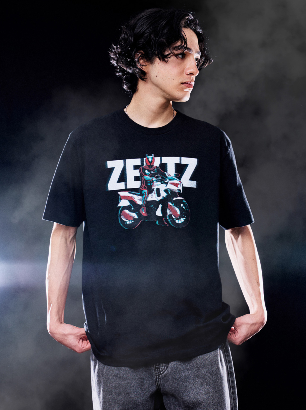石川 「仮面ライダーゼッツ」が専用モービル「コードゼロイダー」にまたがる姿のTシャツです。やはり仮面ライダーと言えばバイクに乗った姿なのでラインナップに入れさせていただきました。かっこいいですよね。
