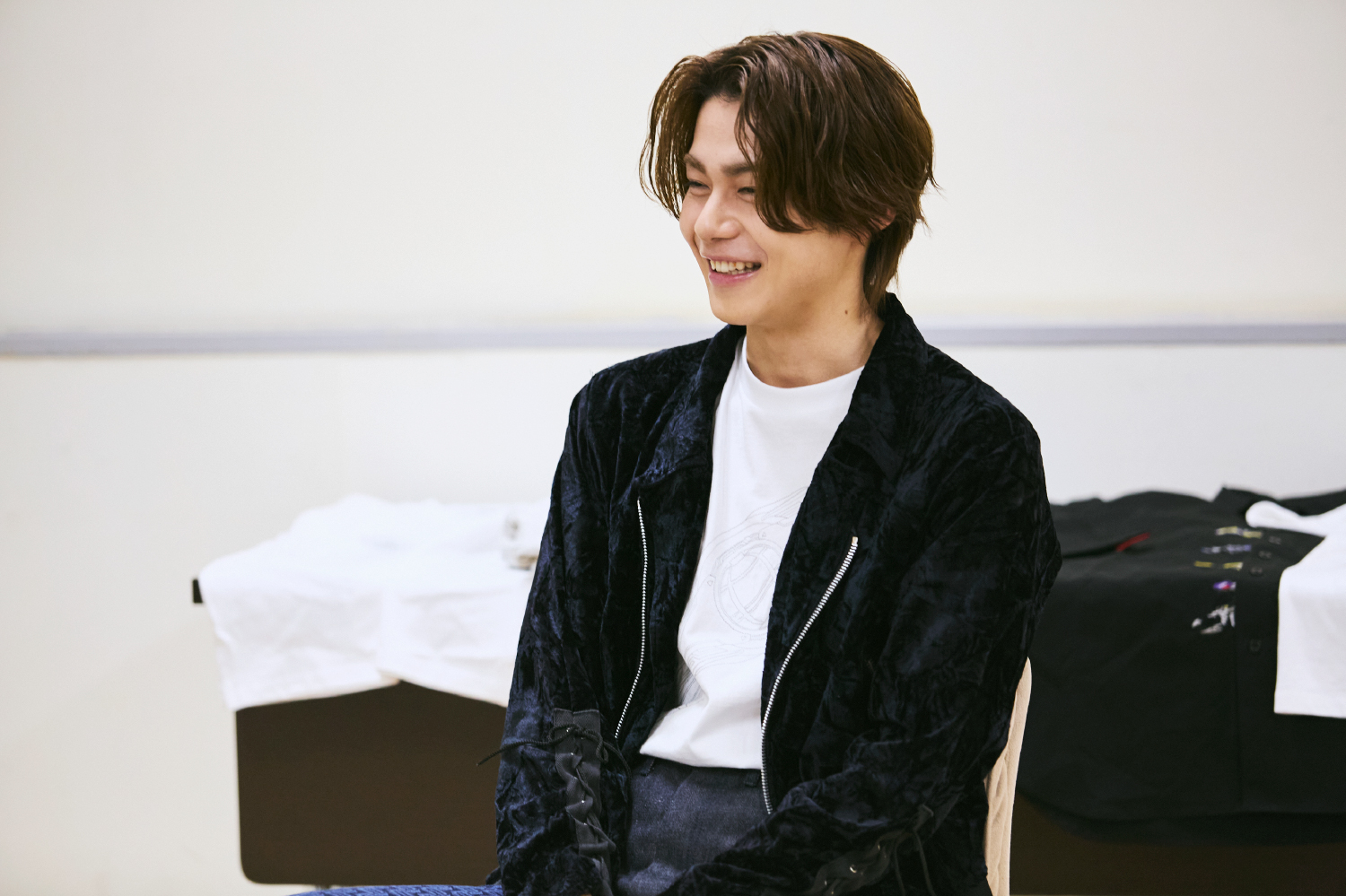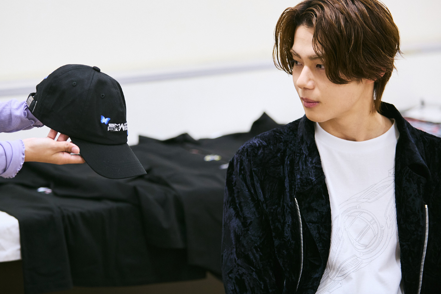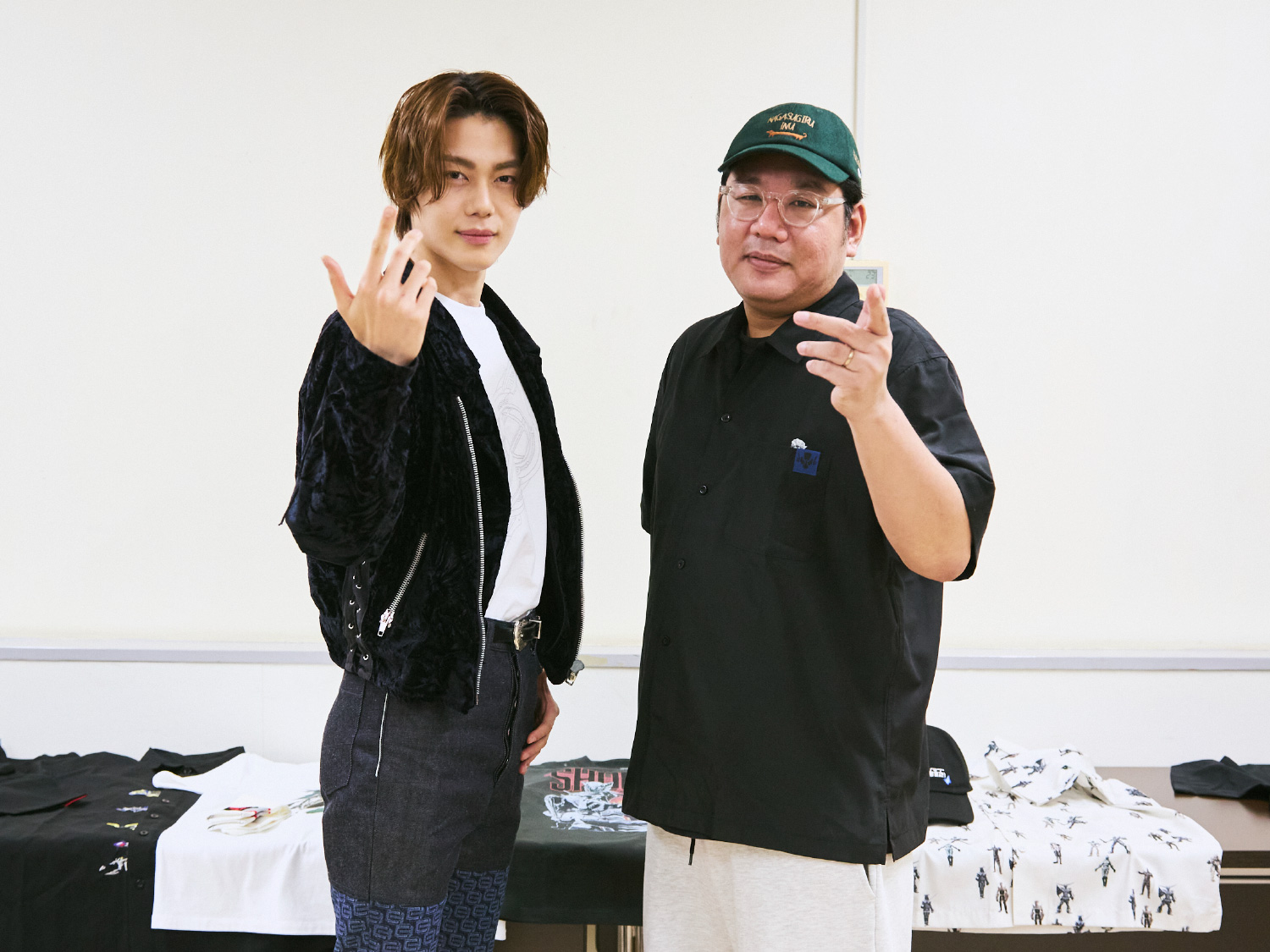 撮影所で着替えやすそうですね。今回のコレクションではラフなアイテムや黒ベースのデザインもたくさんご用意しましたので、ぜひ着ていただけると幸いです。ここからはコレクションアイテムを全種類、今井さんと一緒にご紹介します。