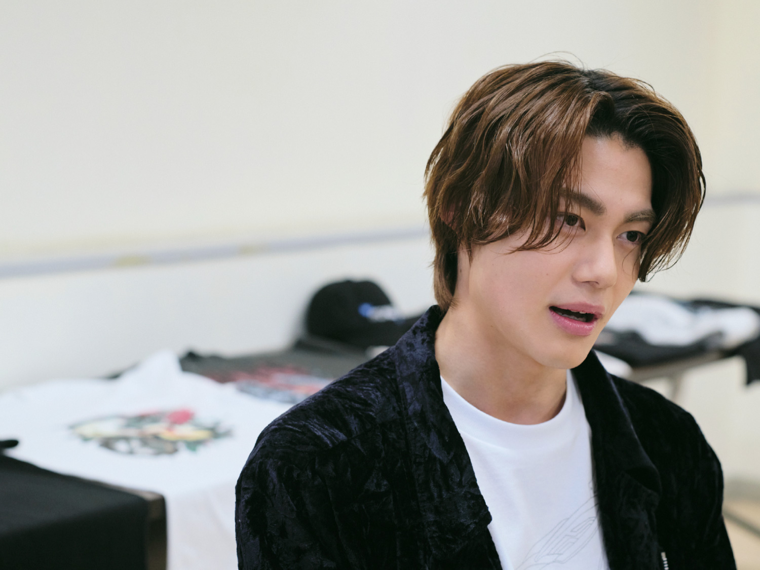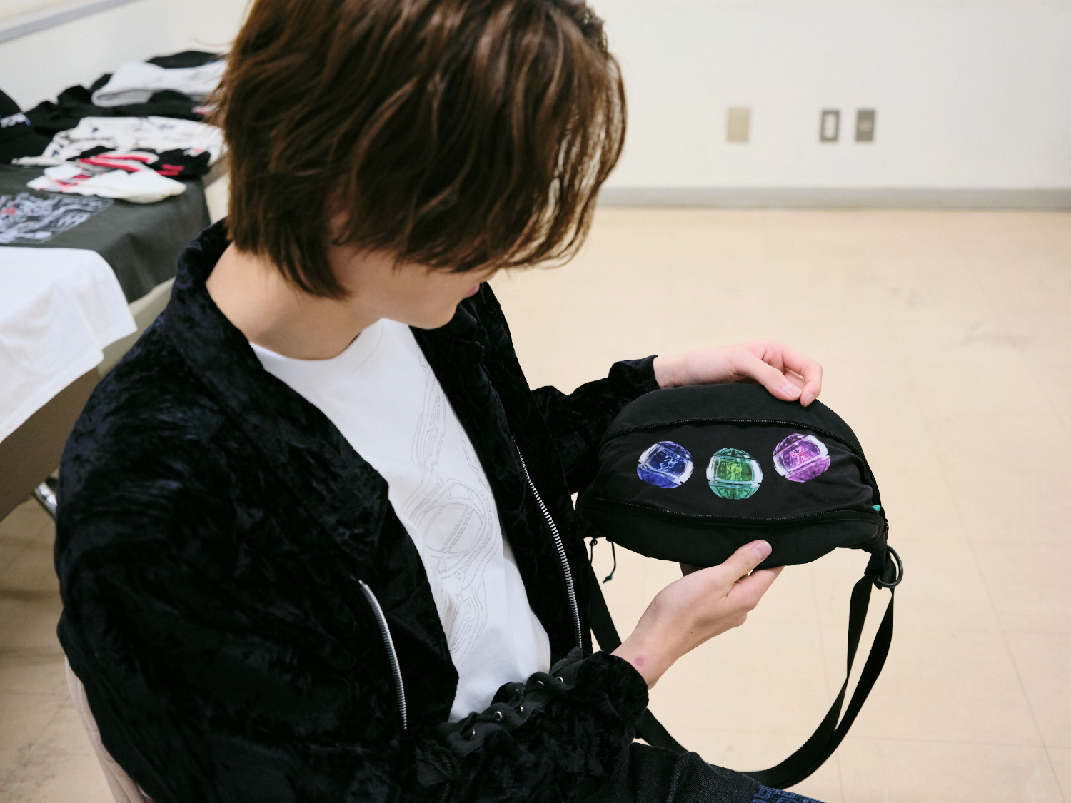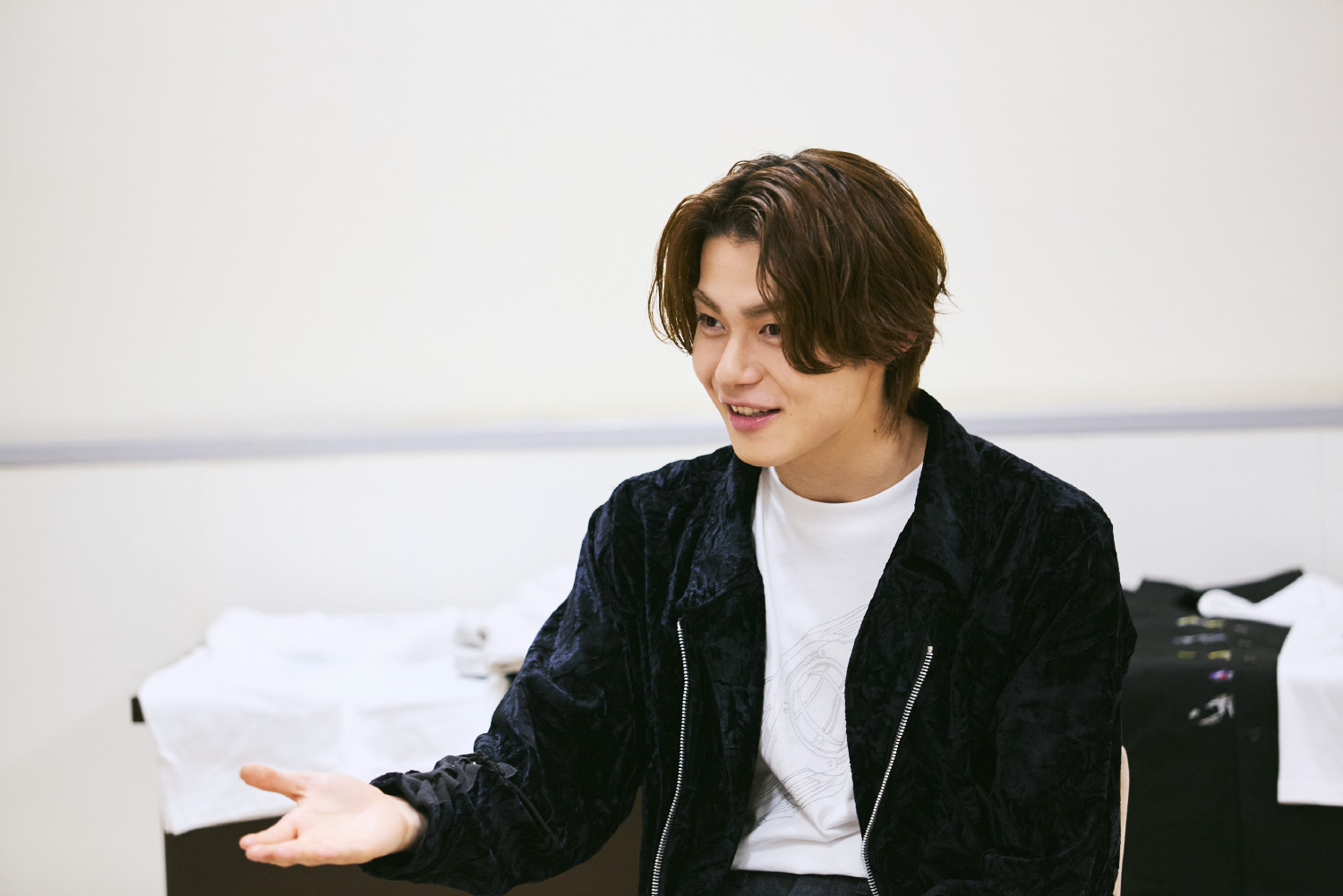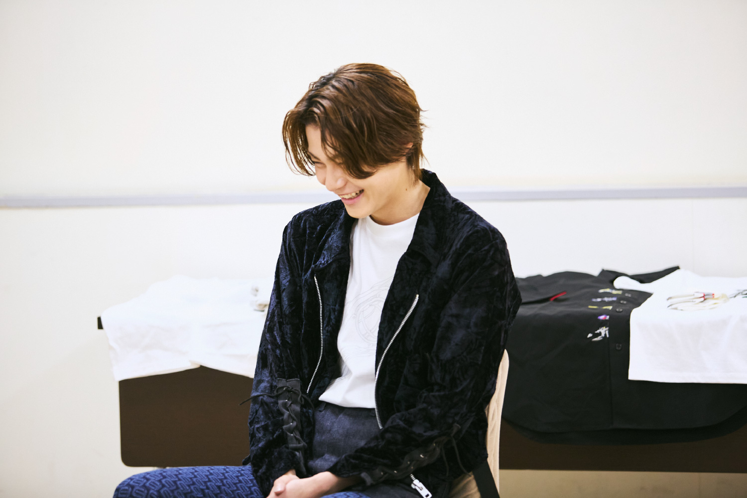 撮影所で着替えやすそうですね。今回のコレクションではラフなアイテムや黒ベースのデザインもたくさんご用意しましたので、ぜひ着ていただけると幸いです。ここからはコレクションアイテムを全種類、今井さんと一緒にご紹介します。