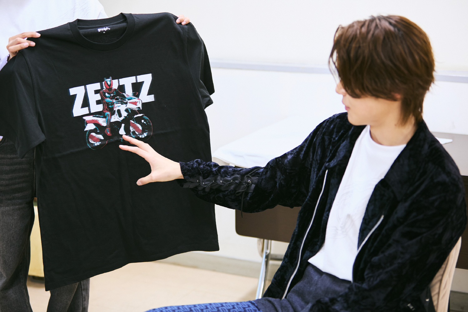インタビューでは、『仮面ライダーゼッツ』で主人公の万津 莫(よろず ばく)役の今井 竜太郎さんに、作品に込めた想いや工夫を詳しくお話いただきました。インタビュアーを務めるのはグラニフのコラボレーション担当、石川です。