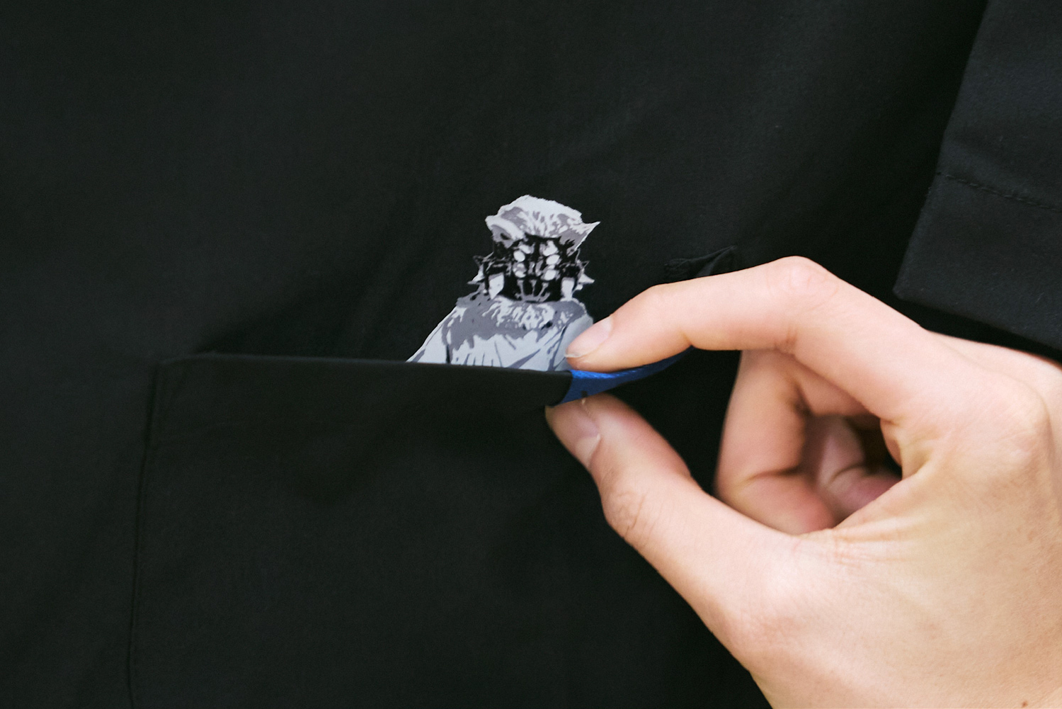 石川ちょっと悪そうなイメージがシャツになったらかっこいいと思い、デザインしました。胸元のポケットにはラキアの弟のコメル・アマルガが入っていて、弟想いなところも表現しています。